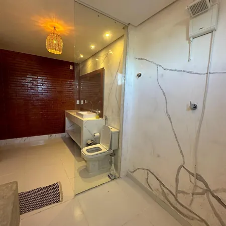 Equipped with air conditioning, Bem Te Quero Pipa Apartment exhibits an adjoining terrace, a balcony, and a dressing area featuring a sofa and a work desk. High-speed internet and a TV set with satellite channels make up the in-room media amenities. A bathroom comprises a separate toilet and a shower. Towels can also be found.